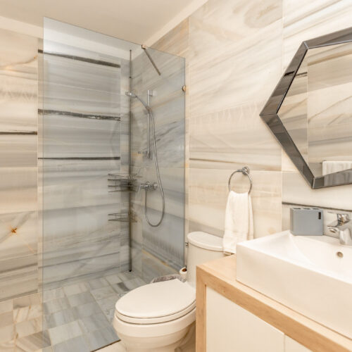 • Floors and bathrooms in Imported White Macael Marble
